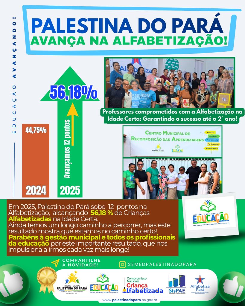 A educação de Palestina do Pará segue avançando, passo a passo, rumo à excelência que tanto desejamos para nossos estudantes. Hoje, celebramos mais uma conquista e agradecemos a todos que, direta ou indiretamente, contribuem para a melhoria dos índices em toda a rede de ensino.